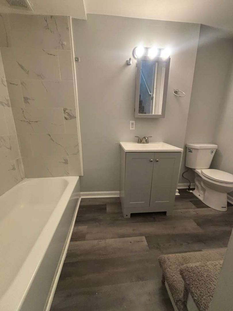 – Stylish, updated bathroom with a new vanity, tile, and fixtures