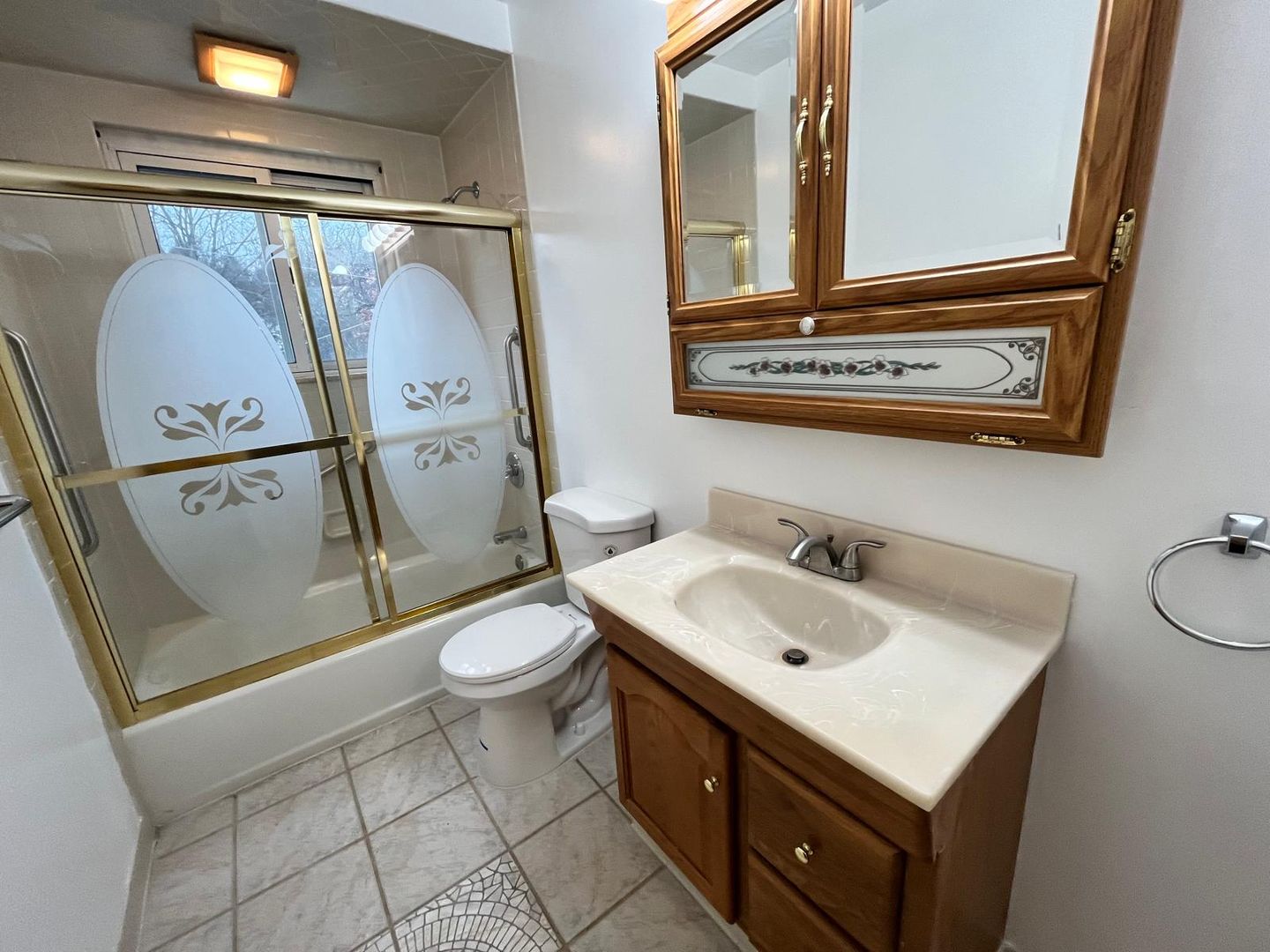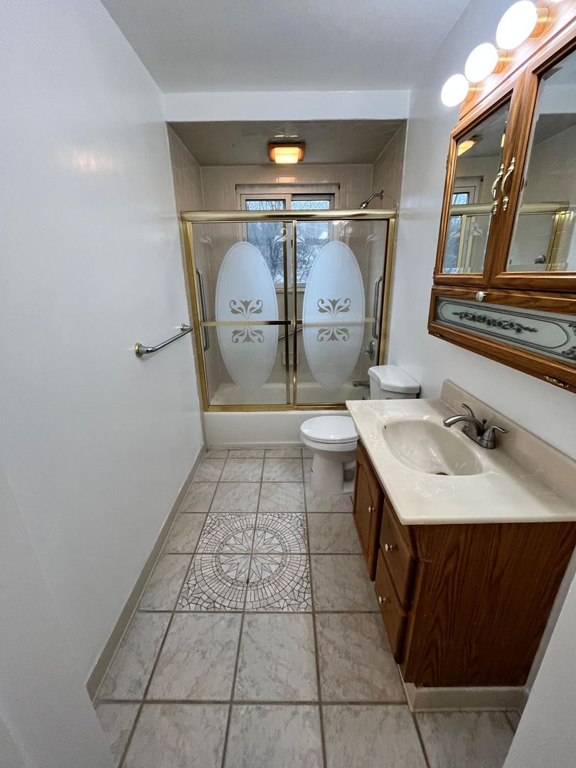 – Renovated bathroom with new vanity, tiled accents, and stylish finishes